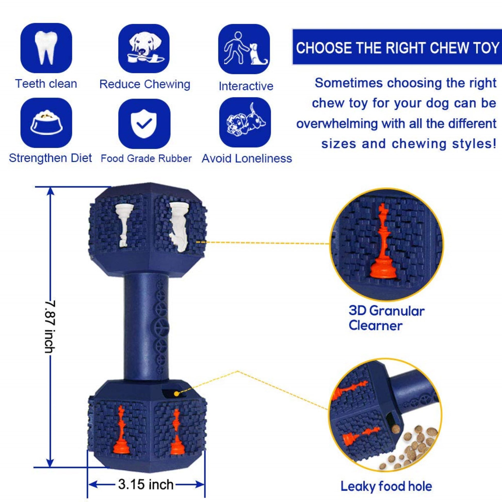 Elige el juguete para masticar con mancuernas para perros y dale a tu amigo peludo el regalo del entretenimiento, la higiene dental y una dieta fortalecida. Observe cómo disfrutan el desafío de extraer golosinas sabrosas mientras mantienen sus dientes limpios y sus mandíbulas fuertes. Invierta hoy en este juguete masticable de primera calidad y descubra un perro más feliz y saludable.