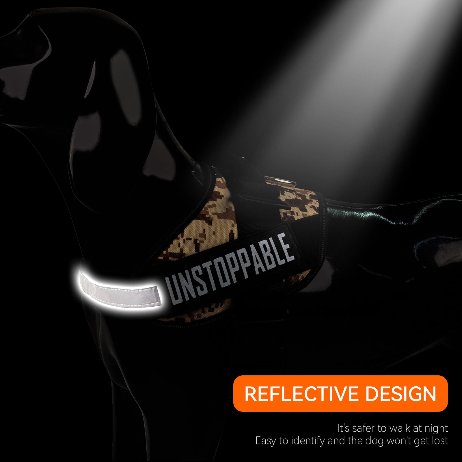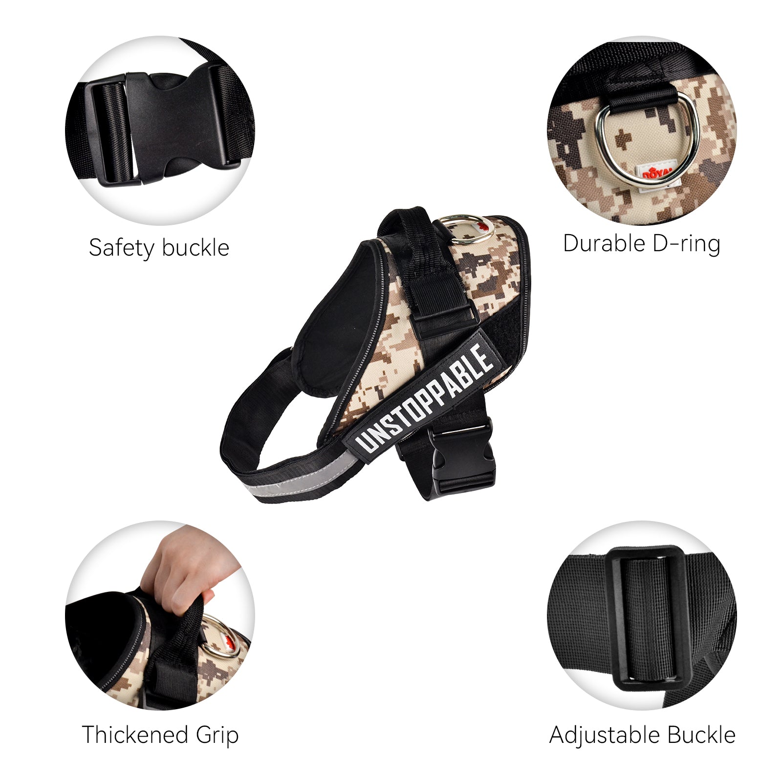 Color de camuflaje : elegantemente diseñado en un color de camuflaje, este arnés agrega un toque de singularidad y robustez a la apariencia de su perro.