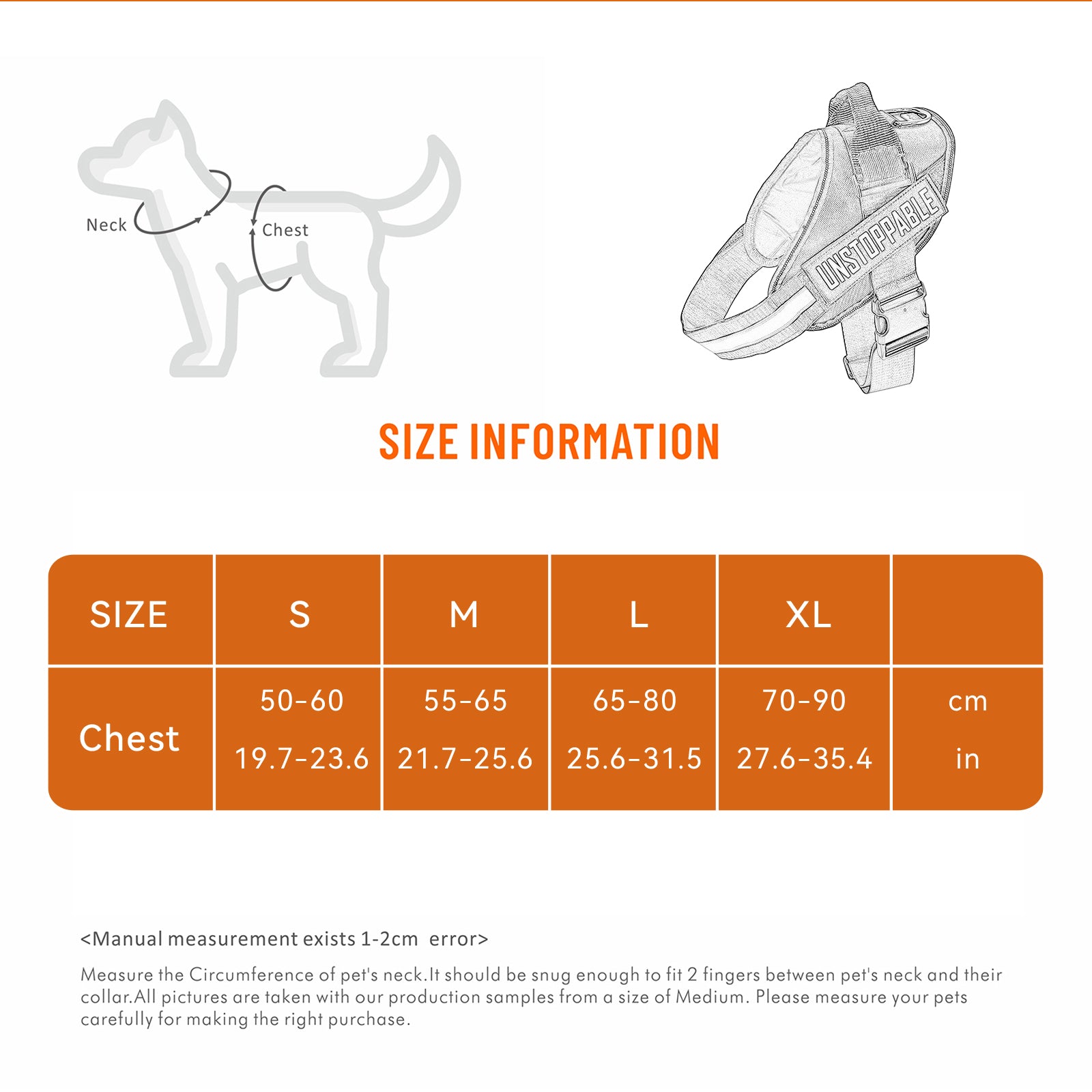 Adhesivo de perro de servicio : el arnés viene con un adhesivo o parche visible y fácilmente identificable de "Perro de servicio" adherido. Esta etiqueta generalmente está diseñada con letras en negrita para indicar claramente el estado de trabajo del perro o evitar caricias no deseadas.