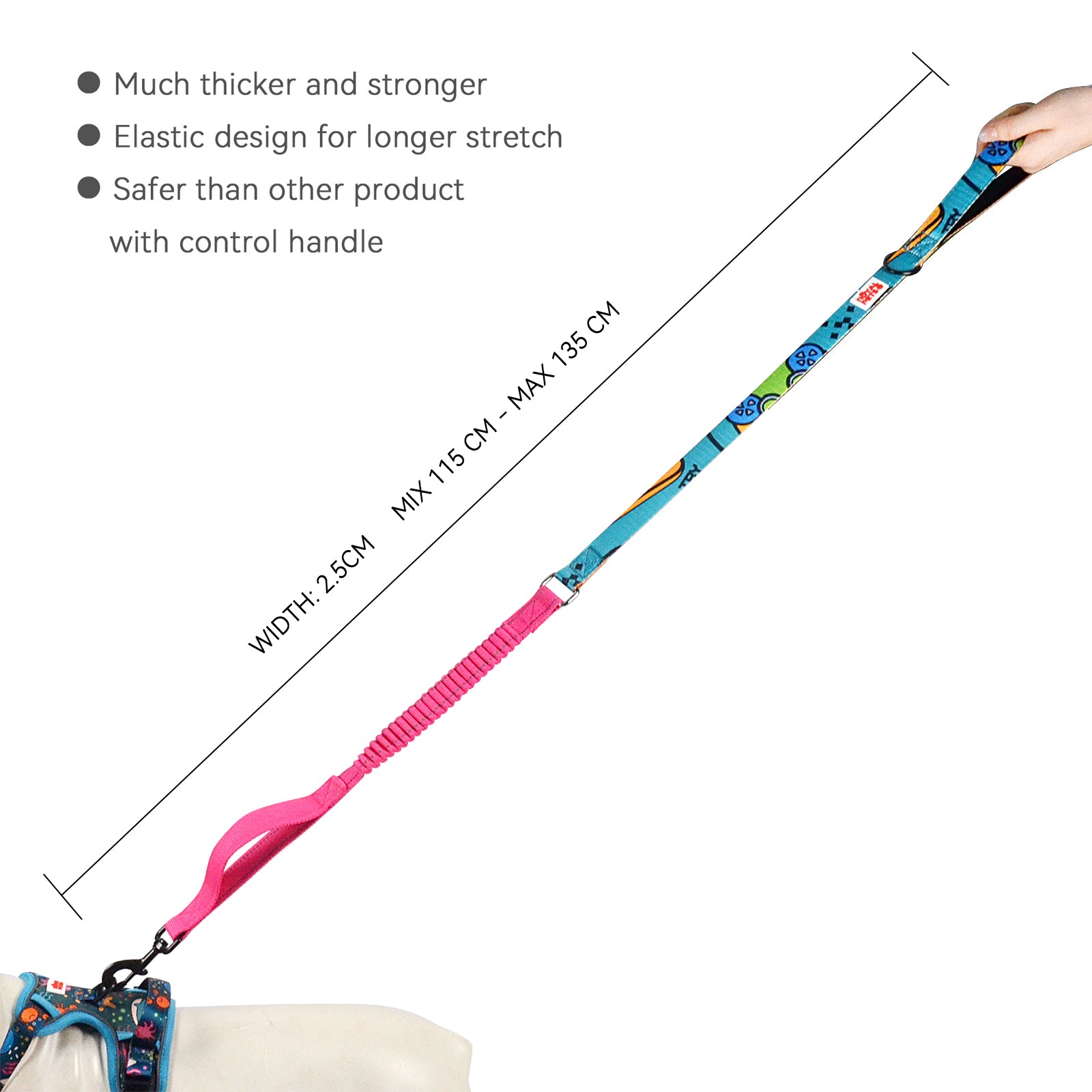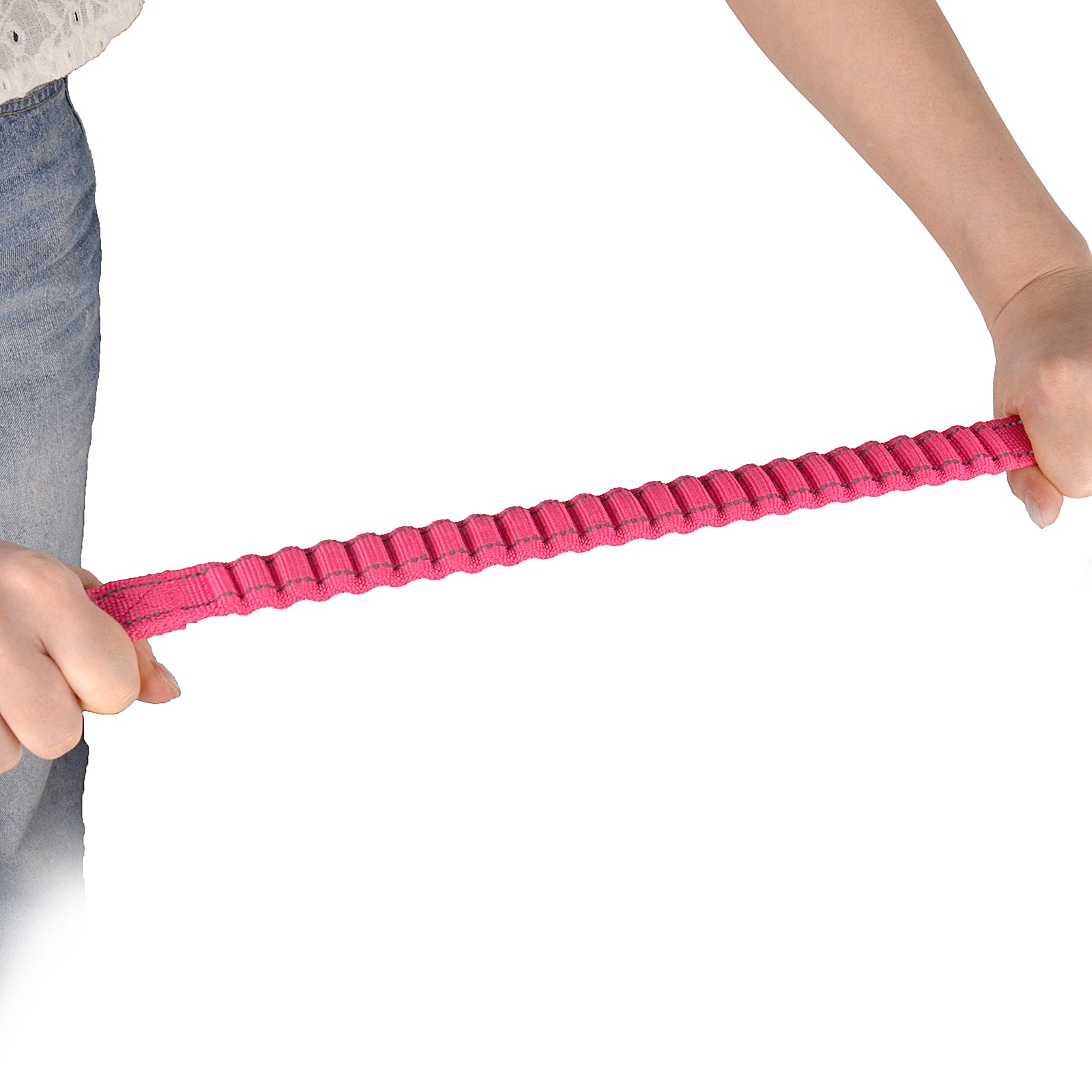 Fabricado con cuerda elástica para sujeción resistente: La correa está fabricada con material de cuerda elástica, que ofrece una excelente elasticidad y durabilidad. Esto asegura un agarre seguro del perro al mismo tiempo que proporciona cierta flexibilidad para absorber tirones y tirones repentinos, lo que reduce la tensión tanto en las manos del perro como del dueño.