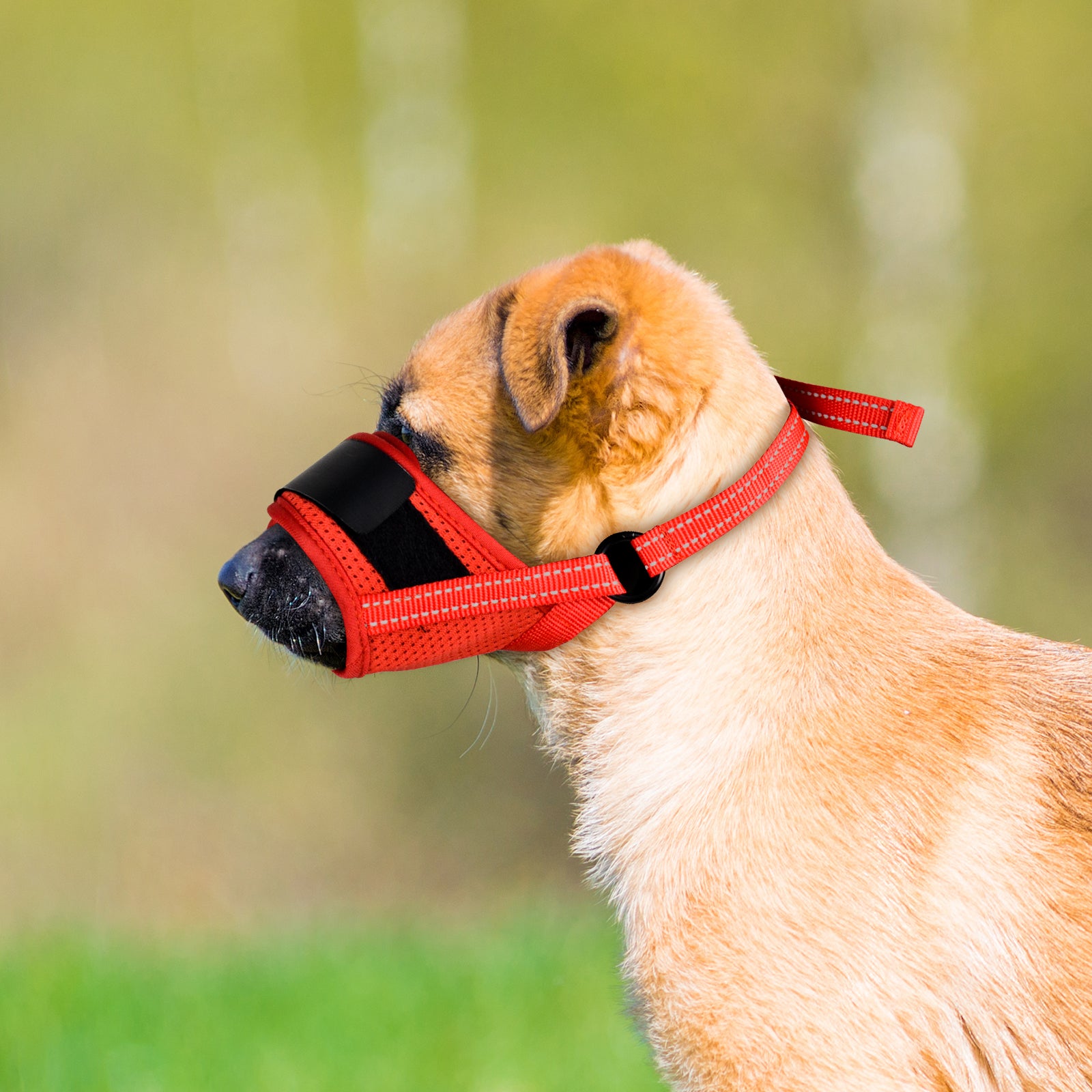 Reflective Design: The muzzle features reflective stripe to enhance visibility during low-light conditions. These stripes reflect light, making your pet more visible to others, which is especially important during walks in the evening or at night.