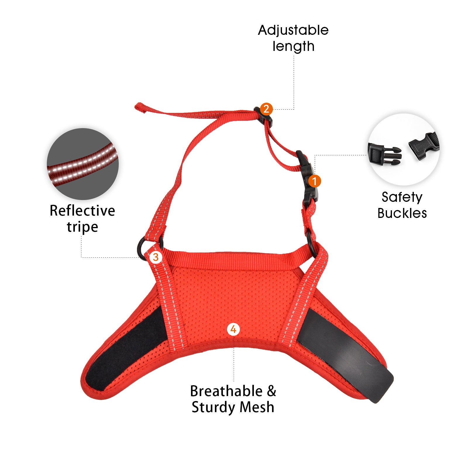 Breathable Mesh: Breathable mesh Fabric allows proper airflow, preventing your pet from overheating or feeling uncomfortable during use.