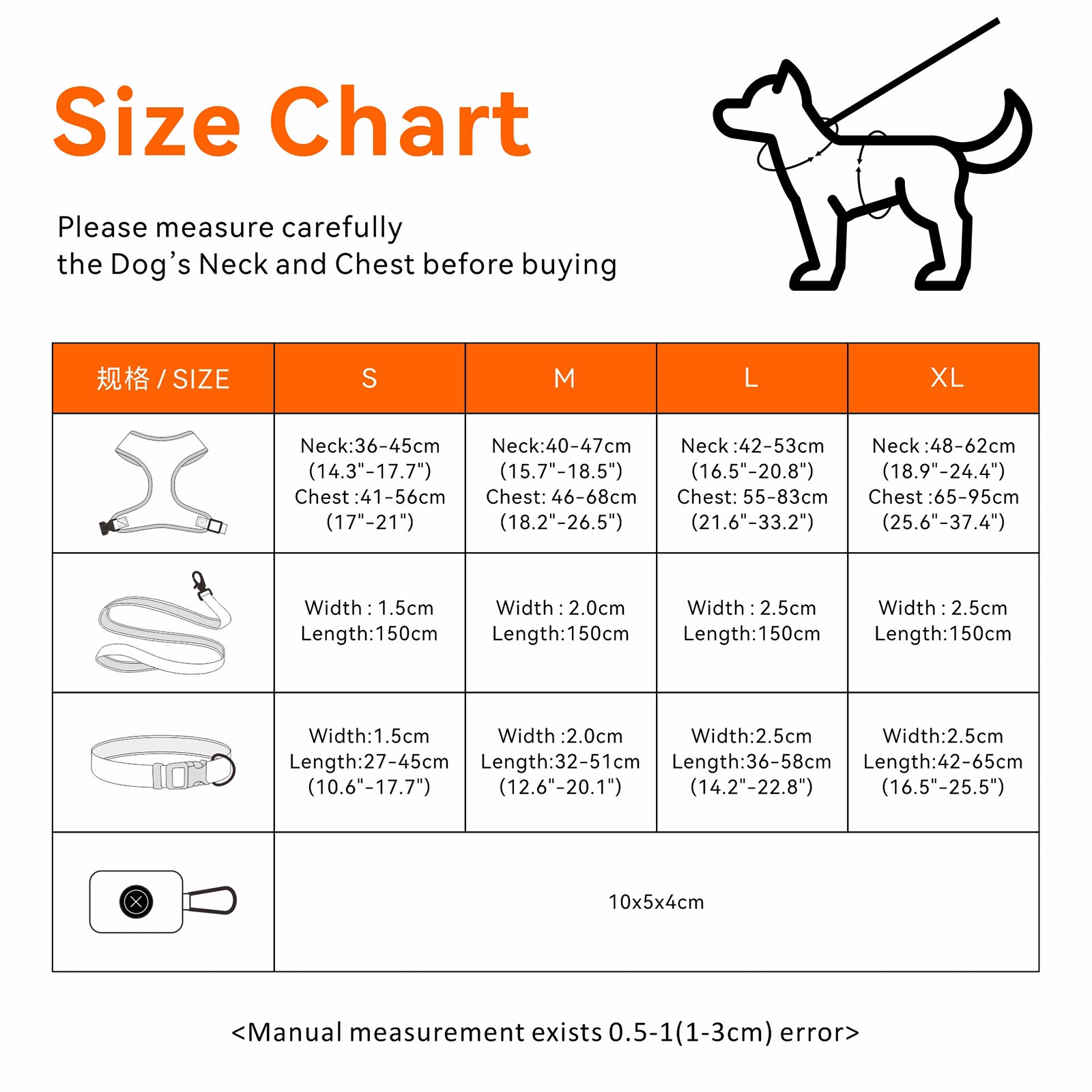 Poop Bag Holder: This practical addition to the set allows you to keep waste bags within easy reach during walks. The holder can be conveniently attached to the leash or harness, ensuring that you are always prepared for clean-up.